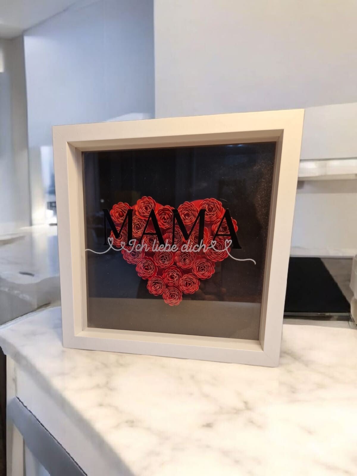 Hi, ich biete dir handgefertigte Papierblumen in einem weißen Bilderrahmen in der Größe von 27x27x6cm (BxHxT) an. Das perfekte Geschenk für deine Mutter oder Oma, zum Muttertag, Valentinstag, Geburtstag oder nur für dich!